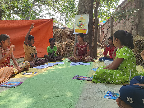 Months before the camp began, volunteers were mobilised and trained to lead fun and engaging learning activities with the children in their villages, mohallas, and neighbourhoods. They also received an easy-to-use activity manual to help them plan and conduct sessions effectively.